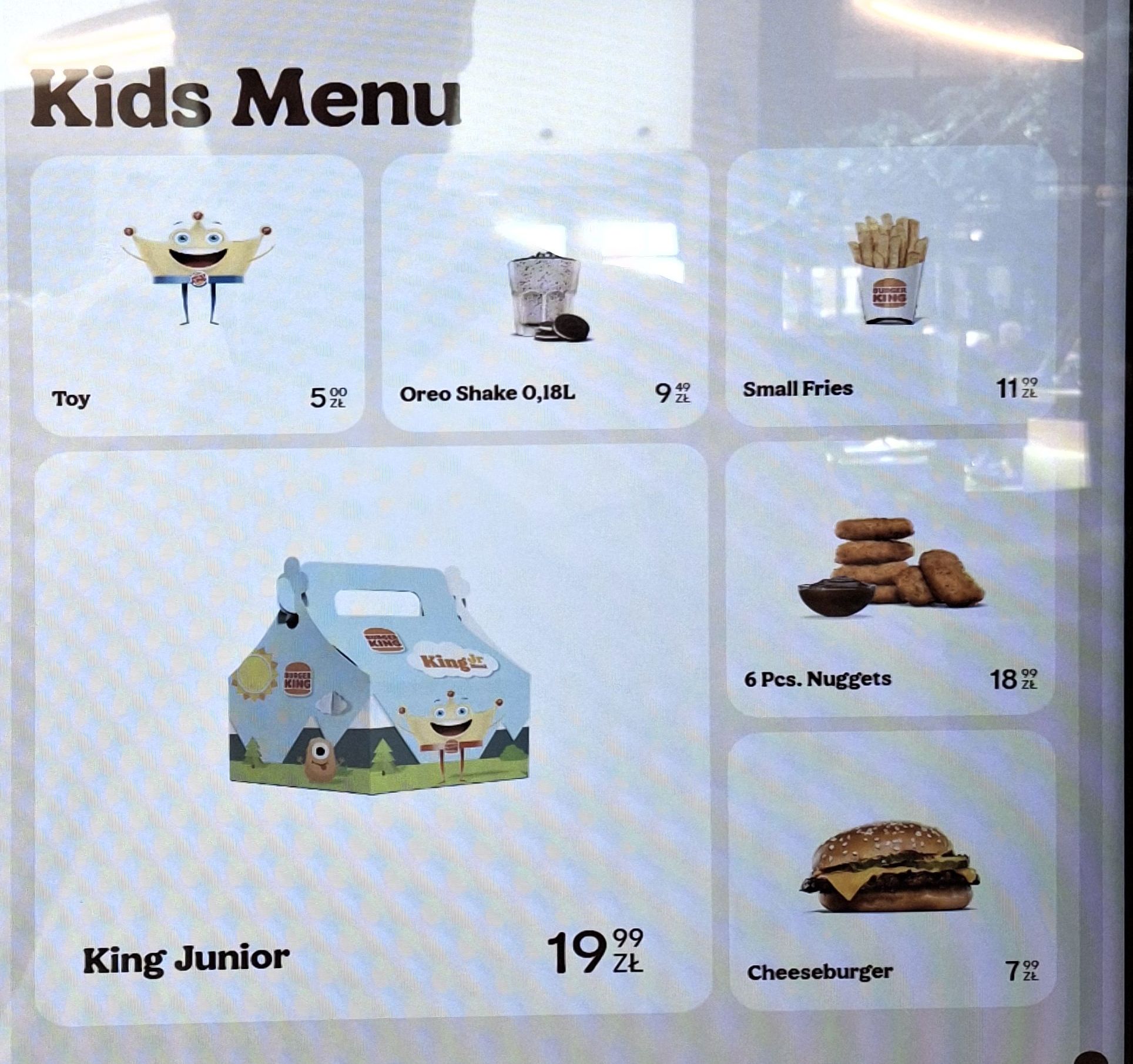 An overview of Burger King’s kids menu in Poland, focusing on pricing, value, and which items stand out as more expensive.