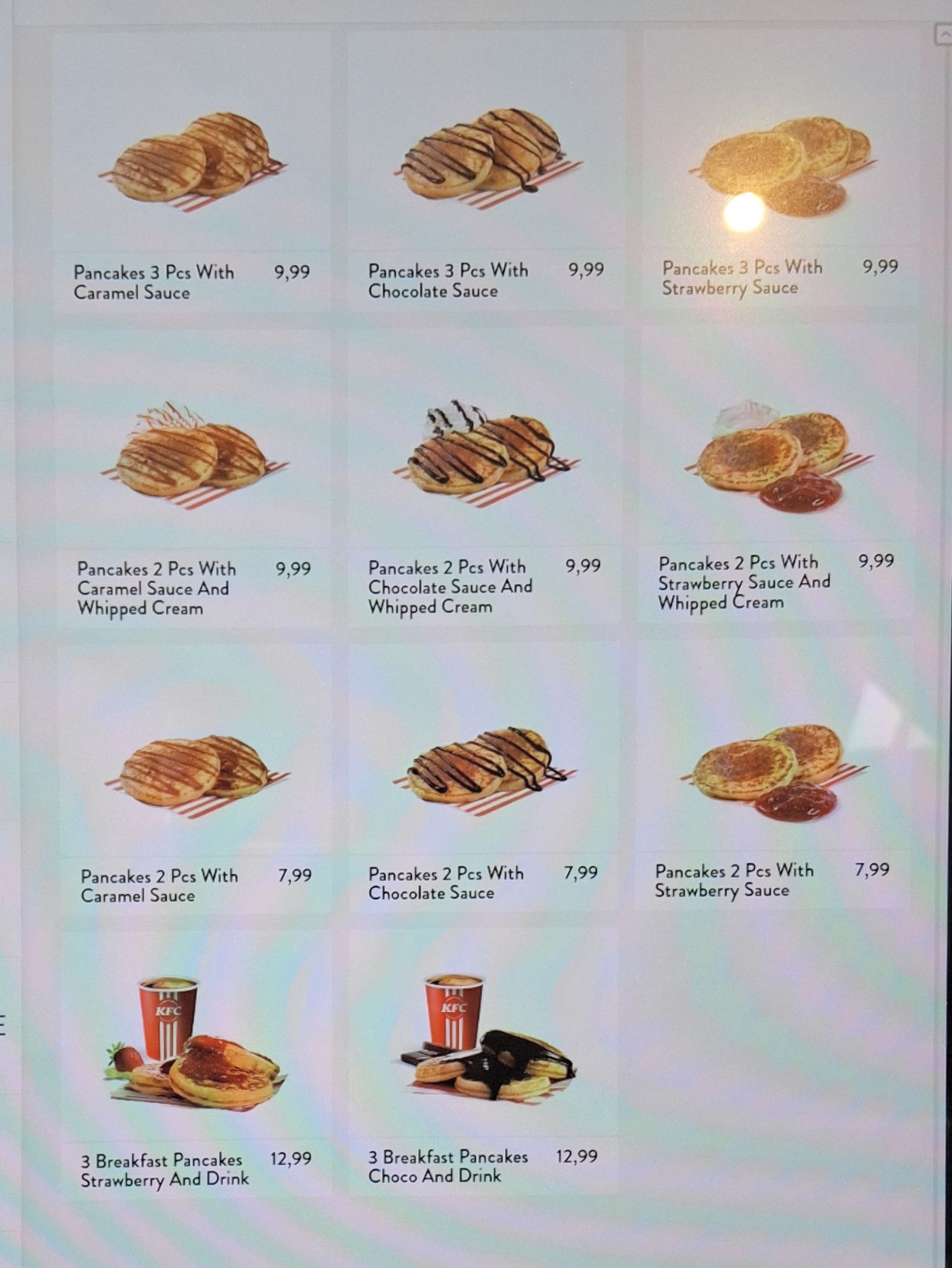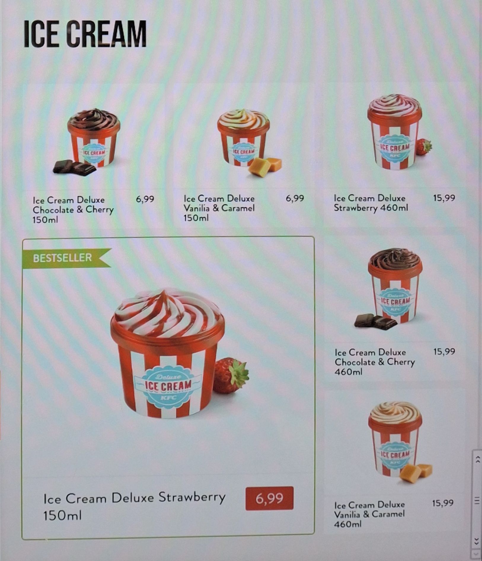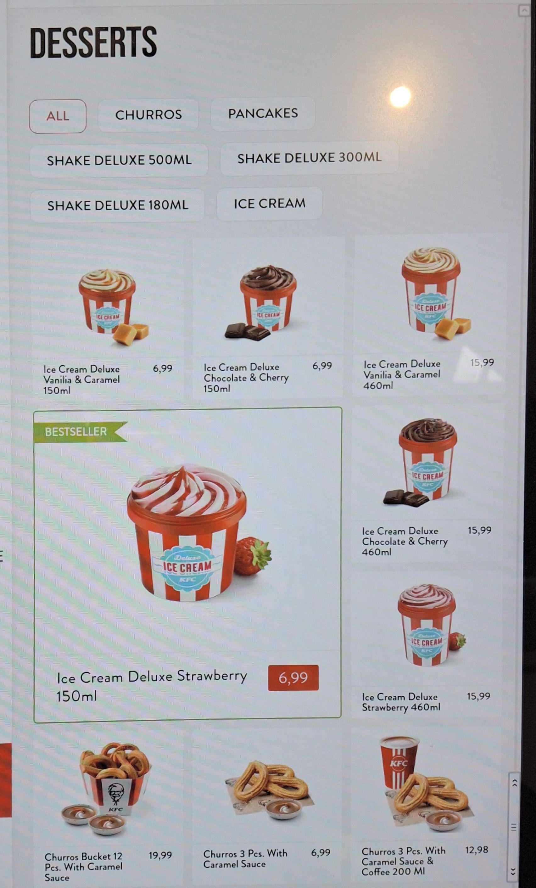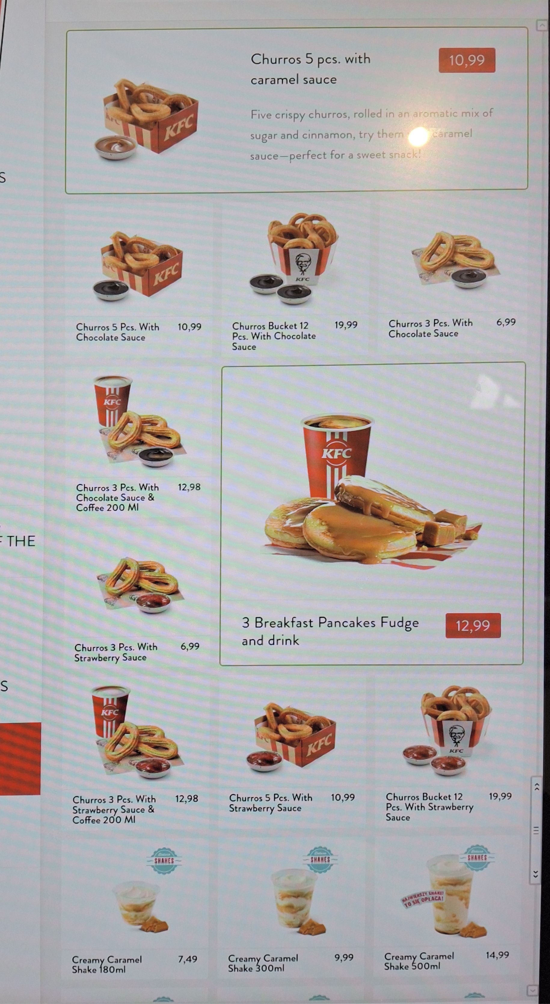 The dessert menu at KFC in Poland is so large that it’s often split into its own dedicated section. It covers everything from pancakes and churros to shakes and ice cream.