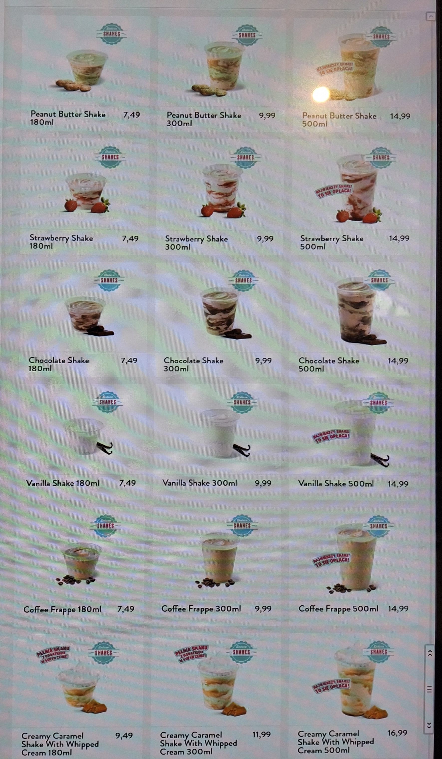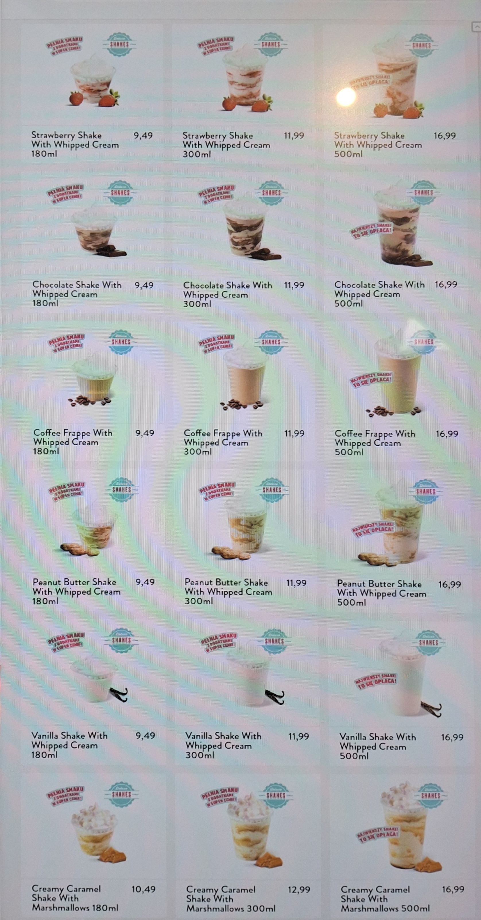 Ice cream, in particular, is very popular in Poland. You’ll find the usual classic flavours, but the shake selection is where things really stand out. There’s a wide variety, including standard shakes, topped versions, and options with whipped cream and marshmallows.