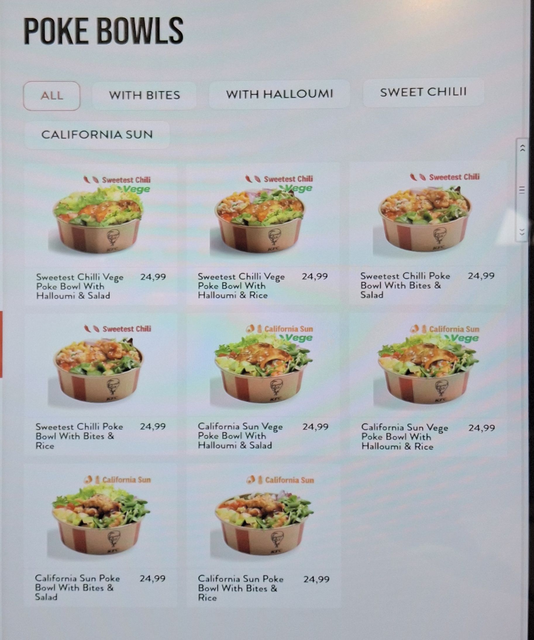 KFC poke bowls in Poland are all priced the same, making it an easy choice based purely on preference rather than cost.