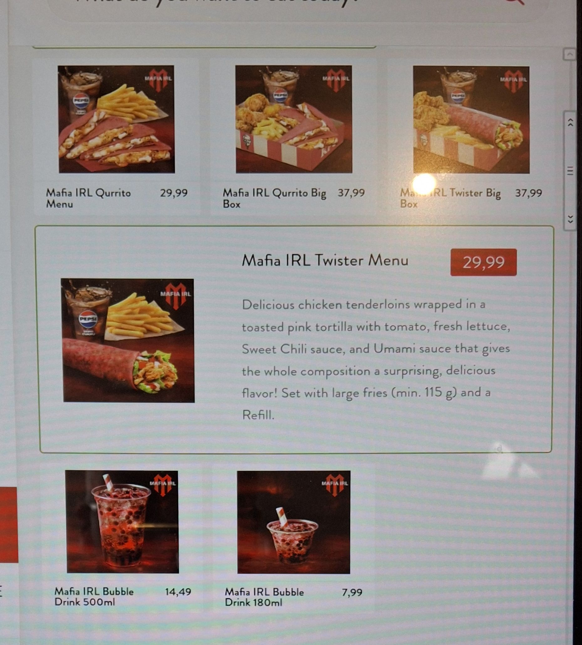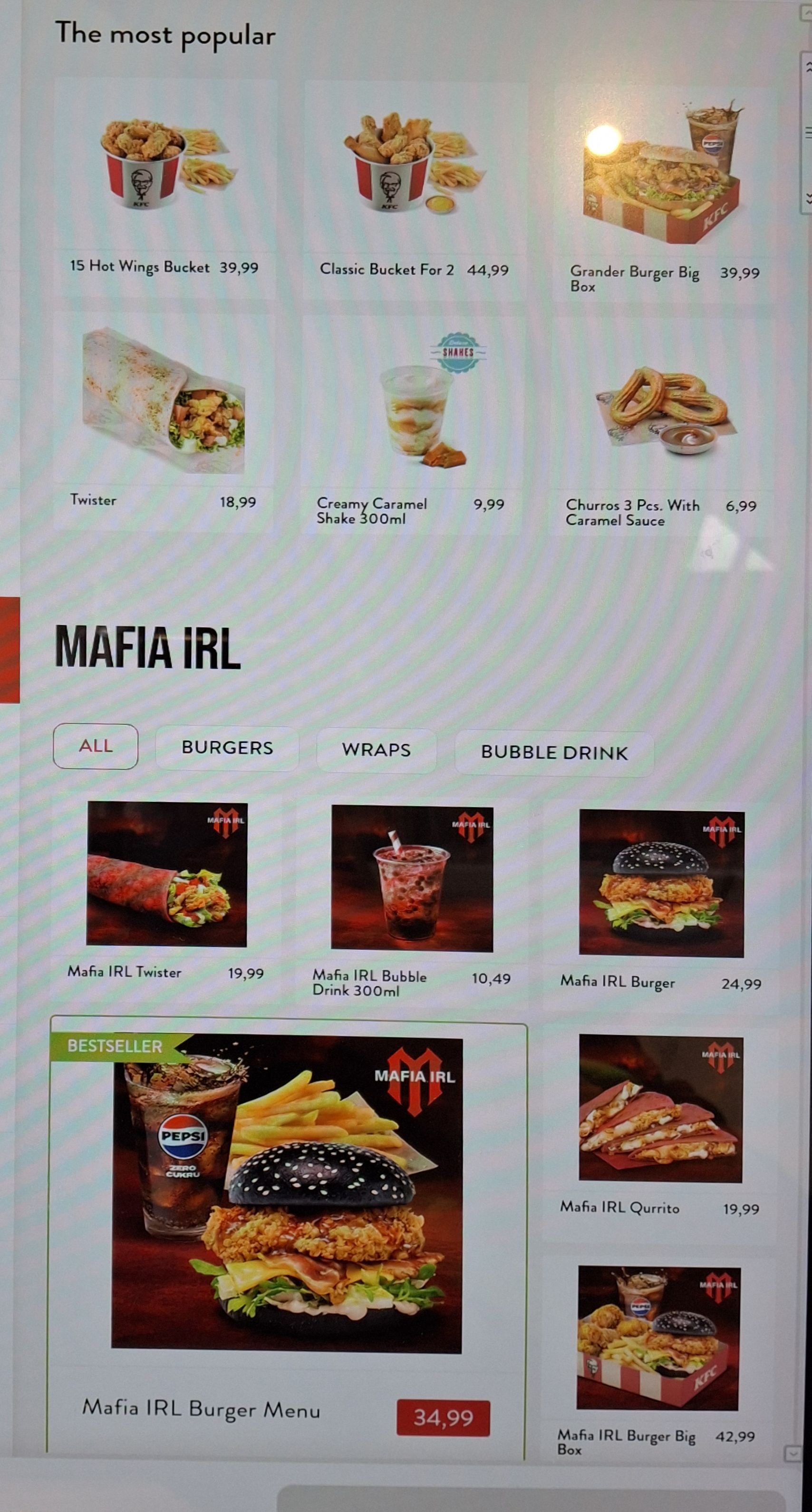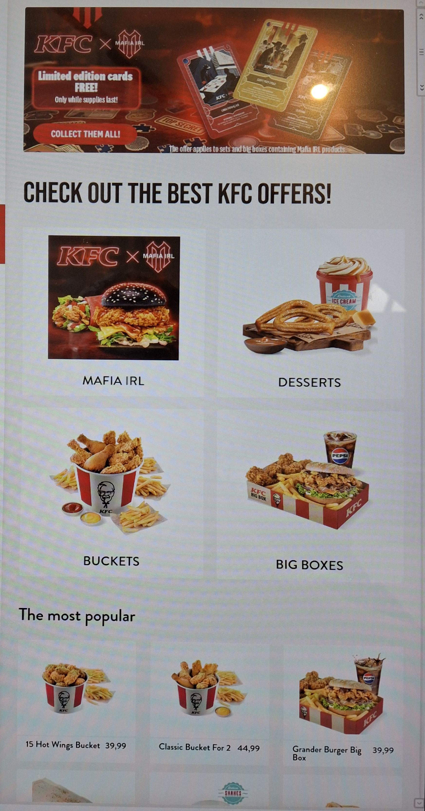 Below is a snapshot of current promos at KFC in Poland, focused on the ongoing “Mafia” promotion.