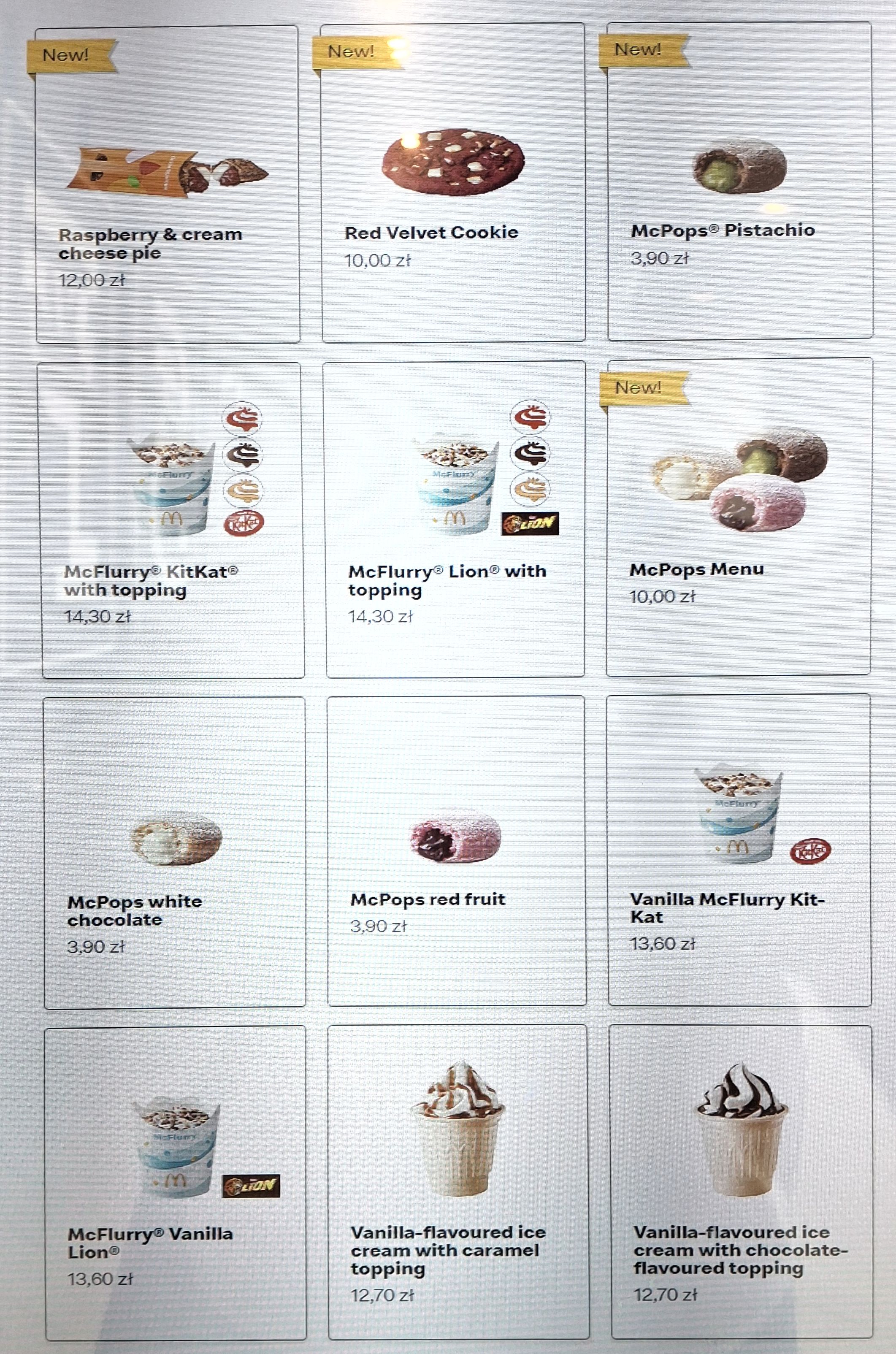 The dessert menu at McDonald’s in Poland is noticeably larger than in many other countries. A big part of that comes down to how popular ice cream is locally - there’s a clear demand, and the menu reflects it.
