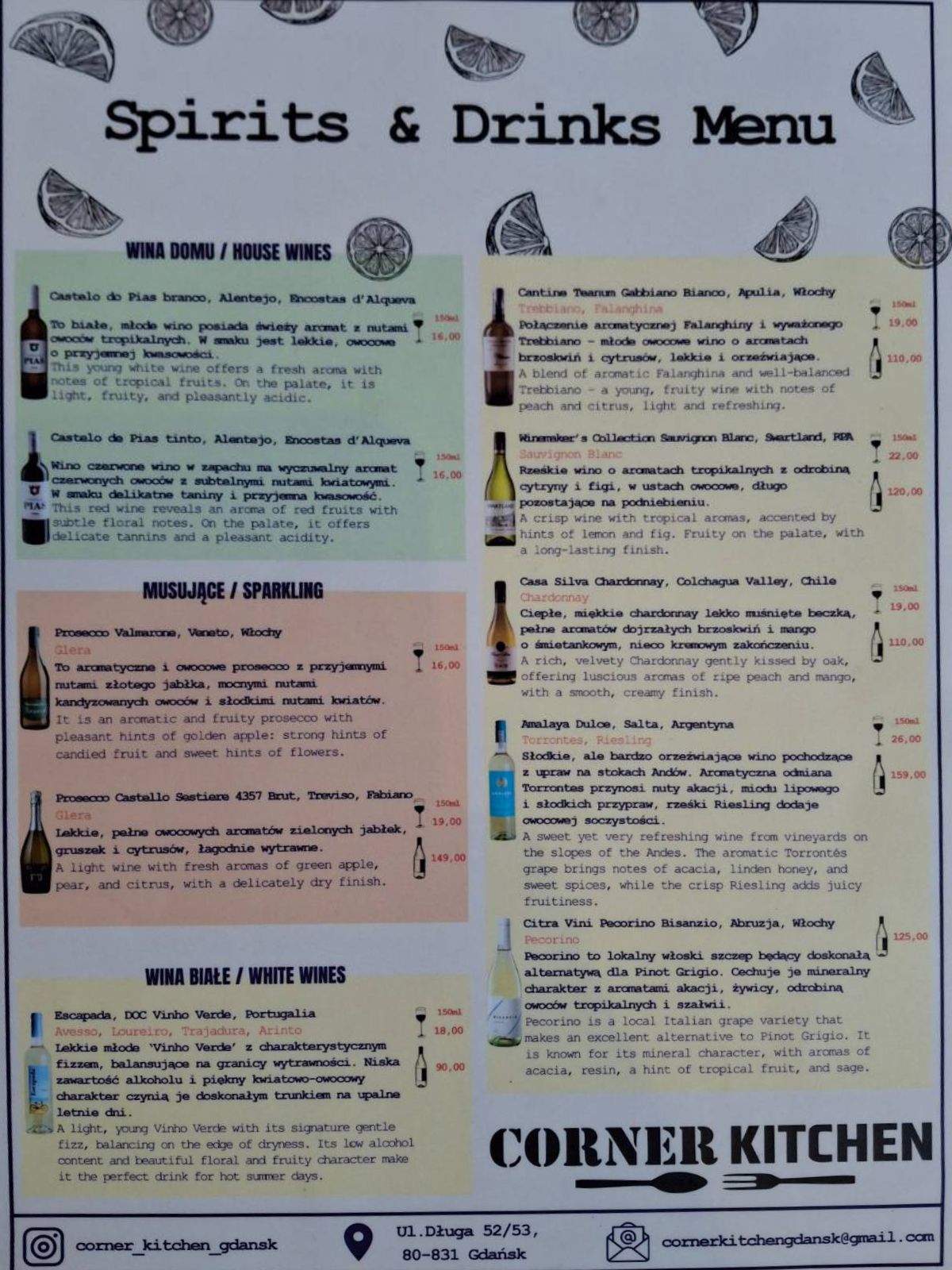 red wine, orange soda, oranges