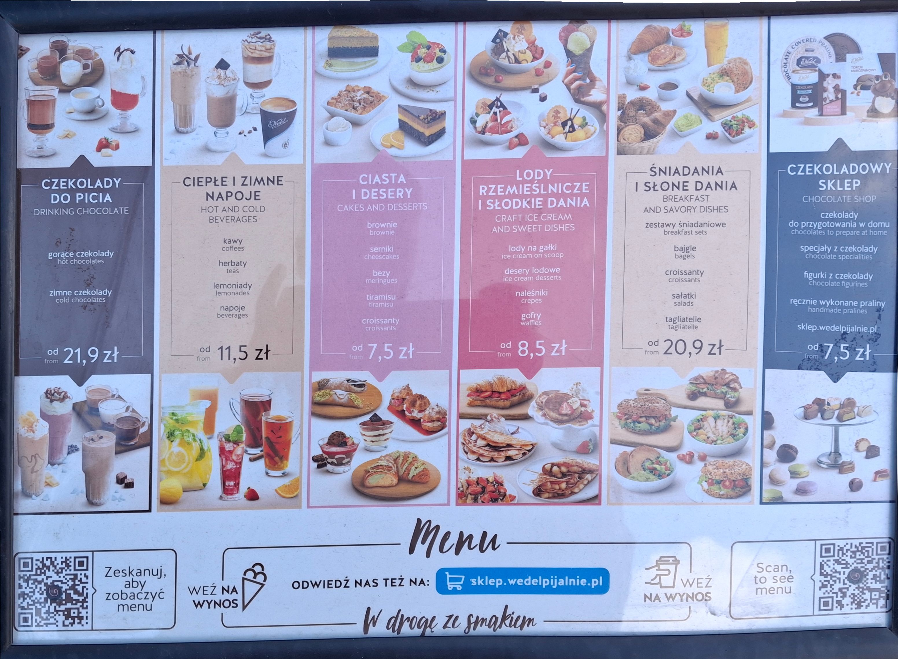 Prices are not especially low and there are cheaper local alternatives. Still, for visitors or anyone interested in Polish chocolate, it works well as a convenient and well-placed option. The location adds to its appeal and the broad selection makes it suitable for both takeaway and eating in.